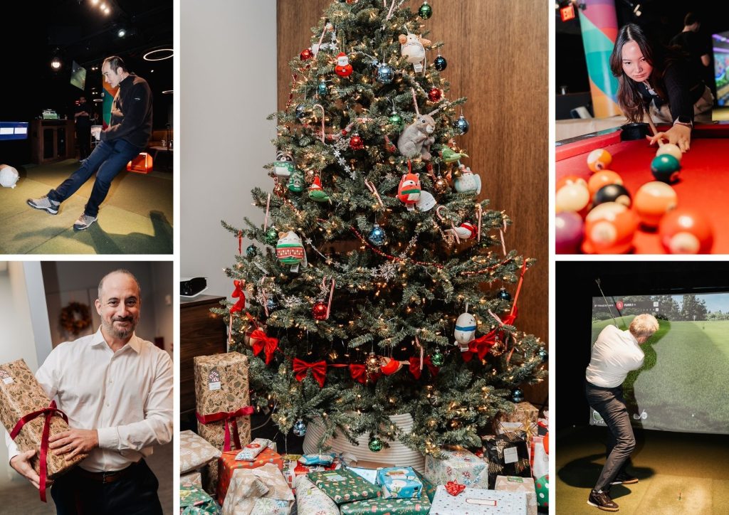 In NYC, the evening began with Secret Santa in the office, surrounding the beautiful Christmas tree. After exchanging gifts, the group headed out to Five Iron Golf for tons of games, including soccer and golf simulators, pool, and shuffleboard!